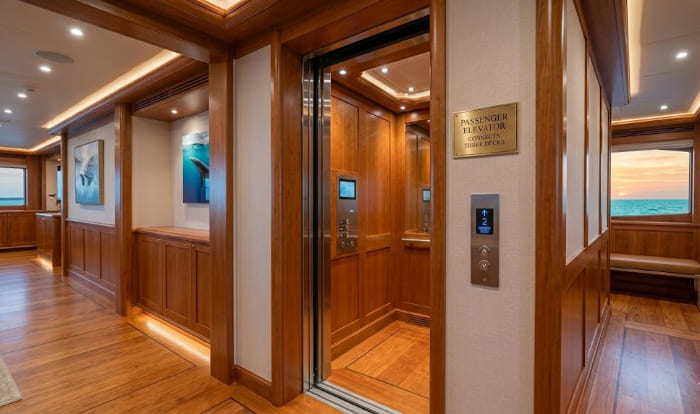 Beyond the aesthetic splendor, the Privacy is engineered for genuine utility. Perhaps the most telling detail of its interior design is the onboard passenger elevator. While such a feature is typically reserved for much larger megayachts, its inclusion here is a masterstroke of functional luxury. Connecting all three main decks, the elevator provides seamless accessibility—a crucial necessity for Tiger Woods, ensuring his maritime sanctuary remains a place of total comfort and recovery, regardless of the physical toll of his professional career.